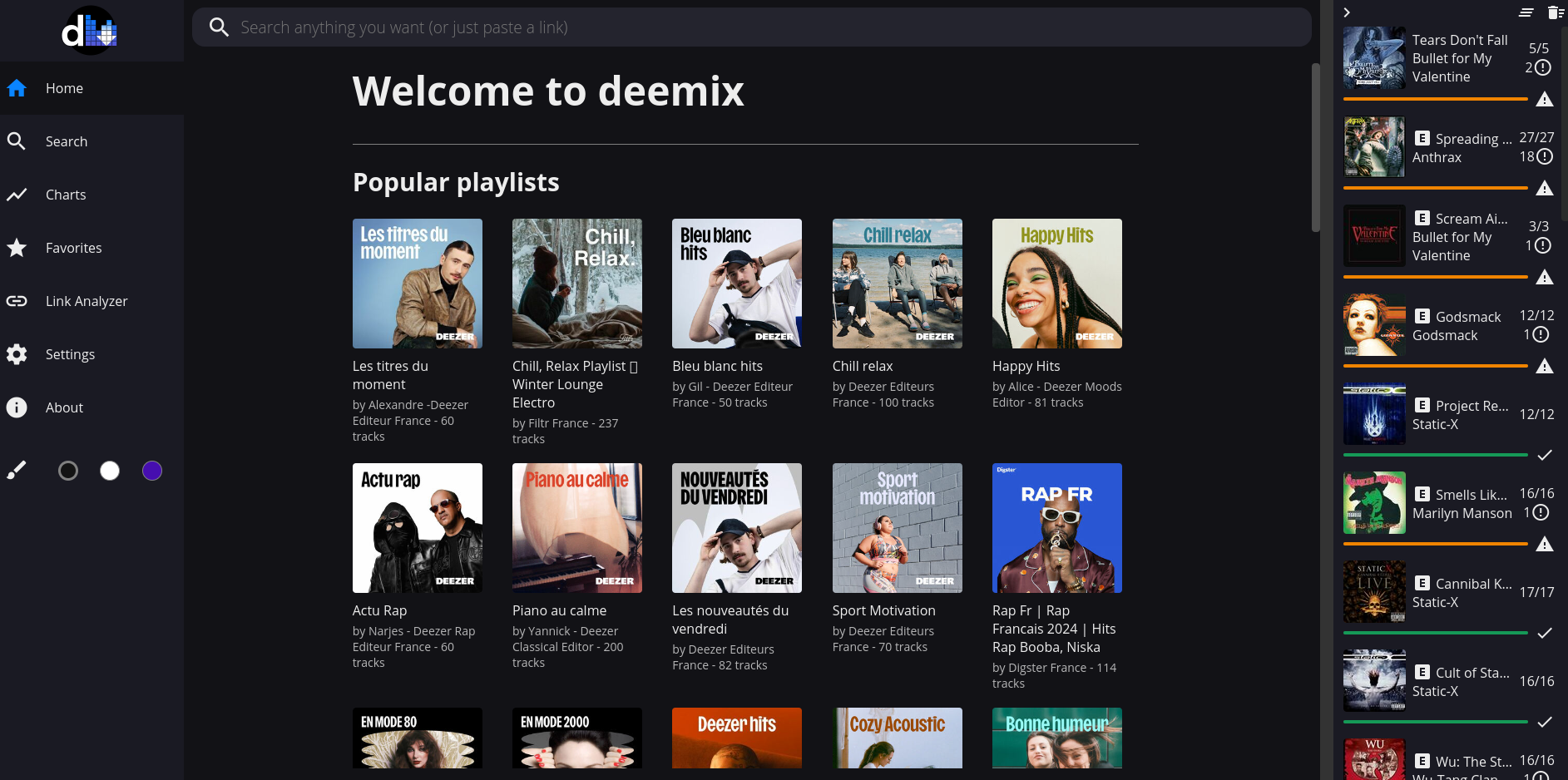 Deemix is a cool tool to download music from a Deezer account and you can play it after in Navidrome ( not on the dashboard )